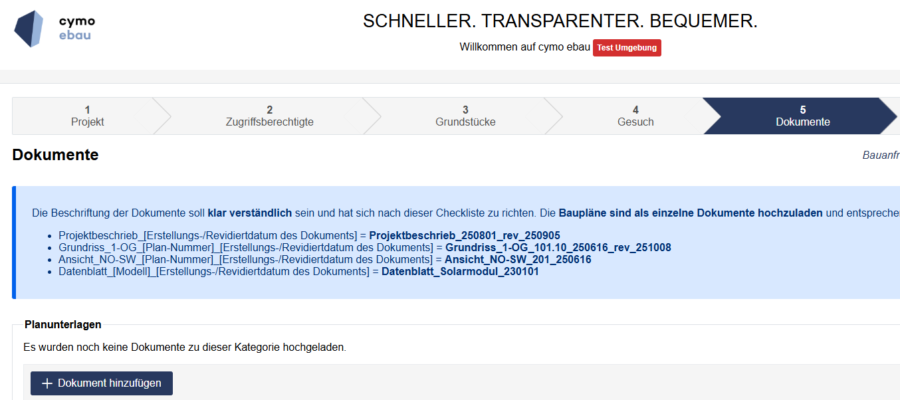Um eine möglichst genaue Dokumentenbezeichnung von den Benutzern zu erhalten, wurde eine Infobox im Reiter Dokumente eingebaut. Hier können pro Kanton unterschiedliche Texte formuliert werden.
